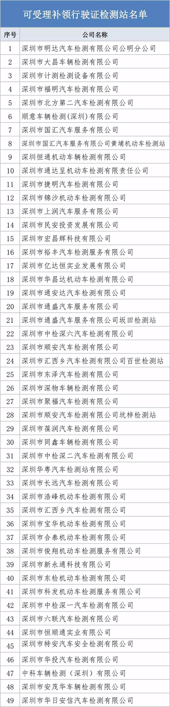 仅限深圳机动车,在下列49家检测站办理年检业务才可以在检测站申请补换领行驶证!