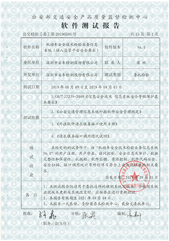 测试报告顺利通过公安部交通安全产品质量监督检测中心功能和安全测试双认证,标志着安车检测始终以客户的根本利益作为出发点。安车检测将严格按照行管部门的规范要求进行产品设计、生产和销售,保障客户生产经营的先进性、持续性,为客户创造更大的经济效益。