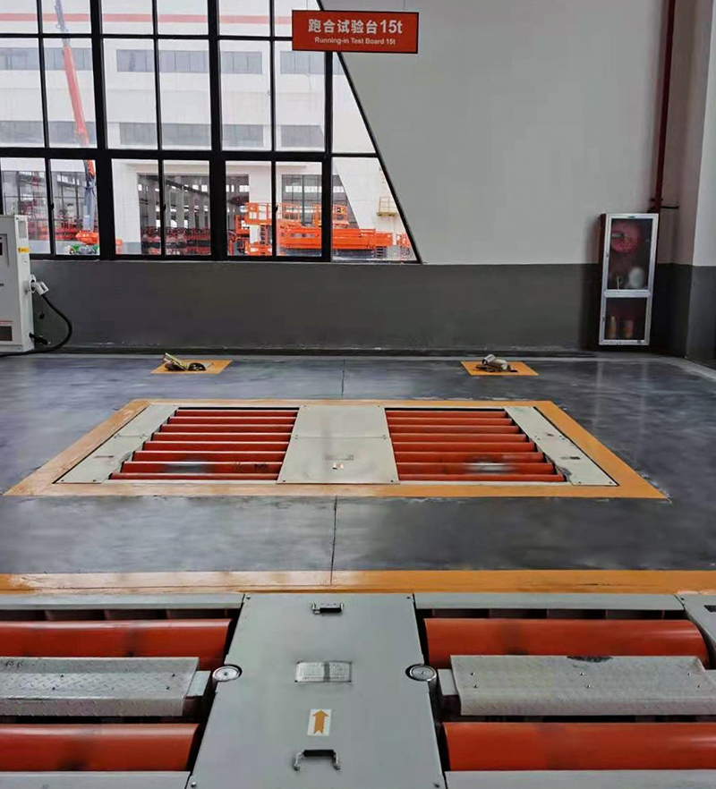 由于高空作业平台车辆的轮胎尺寸、轮距、离地间隙等参数与常规车辆差异较大,安车检测为其量身定制开发了集制动、车速、跑合等一系列的车辆下线检测设备,为浙江鼎力的产品质量保驾护航。
