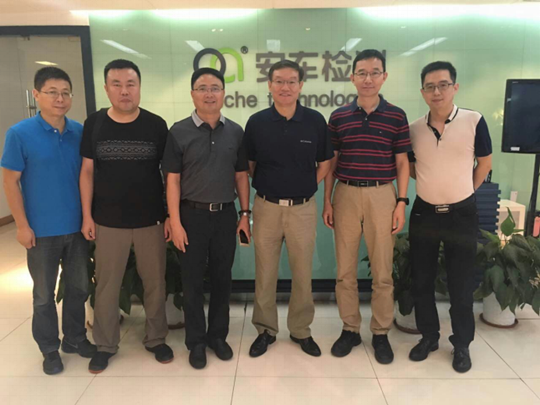 2016年7月27日下午,中国汽车维修行业协会秘书长严波偕同《汽车维护与修理》杂志社于开成副社长及刁实庆业务总监莅临我司视察和指导工作。 我司总经理贺宪宁、副总经理沈继春、销售中心总经理张宝峰等人接待了严秘书长一行,我司作为中国汽车维修协会常务理事单位汇报了企业自身发展情况及国内机动车检测行业发展趋势,严秘书长也对我司近半年的工作做出了积极肯定。视察期间严波秘书长阐述了协会新一届领导工作重点和方针,安车公司领导充分认可新一届协会领导的工作要求,愿意积极参与协会的各项工作建设。