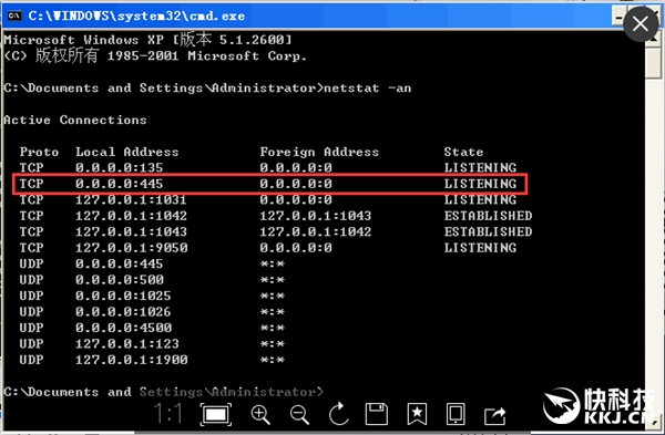 3、Windows XP、Windows Server 2003系统用户还可以关闭445端口,规避遭遇此次敲诈者蠕虫病毒的感染攻击。最好把135/137/138/139端口一并关闭。