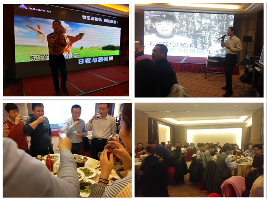最后,销售中心举行了年度表彰大会,对16年度涌现出来的优秀员工和优秀团队进行了奖励。会中各区域进行了精彩的表演,每个团队都别具一格,各有特色;每位同事都青春洋溢,激情四射。贺总的一曲《中华民谣》把晚会推向了又一个高潮。